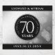 Celebre o aniversário de casamento da 70 platina com essas etiquetas de na moda! As letras brancas elegantes com confete hexagonal sobre fundo de película de platina acrescentam um toque memorável para esta ocasião especial e marco extraordinário. Personalize com os nomes dos casais e anos de casamento. Nota: este design é otimizado para vinho de tamanho normal, vinho espumante e garrafas de cerveja. Design © W.H. Sim. Mais informações em zazzle.com/expressionsoccasions