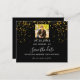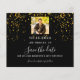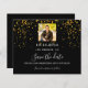 A Save the Date card for a 50th (or any age) festa de aniversário (Salvar a placa de data para uma 50th (ou qualquer idade). Um fundo negro. Decorado com confete de ouro. O texto: Salvar a Data é gravado com um script de estilo com letra de tendência grande. Personalize e adicione uma foto. 1 folha = 1 salve a data da borda impressa em borda.