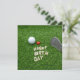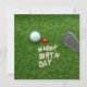 Aniversário de golfe com amor e bola de golfe e areia no cartão de aniversário de grama verde