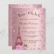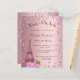 Um convite moderno, na moda e glamouroso para uma festa de aniversário 18 (ou qualquer idade), tema parisiense. Um fundo metálico cor-de-rosa pincelado com corações cintilantes cor-de-rosa e a torre Eiffel com algumas flores. O nome é escrito com um moderno estilo escrito à mão. Personalize e adicione os detalhes da sua festa.