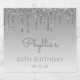 Estas etiquetas de frasco de vinho espumante de 80 chic apresentam uma borda cintilante de falso prateado e fundo de ombre prateado. Personalize-os com o nome de convidado de honra no roteiro de escrita de cinzas, com seu aniversário e data abaixo na fonte sans serif.