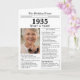 Diga feliz aniversário a alguém nascer em 1935 com este único cartão de aniversário estilo Jornal, incluindo uma foto do receptor e uma coleção de fatos divertidos e notícias do mundo desde o ano de seu nascimento. Projetado para se assemelhar a um jornal antigo no estilo clássico preto e branco. Uma maneira fofa e divertida de celebrar os anos 30!