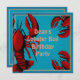 Design gráfico de lagostas vermelhas pela artista/designer Charmaine Paulson sobre um convite de festas de lagosta. O convite tem modelos de texto para sua personalização. ©2013charmanepaulson