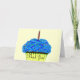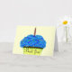 Obrigado de aniversário. Cupcake de chocolate elegante com glacé azul, aparência de aspersores e vela branca vermelha com chama festiva colorida. Placa de arte original Verse Design © TamiraZDesign.