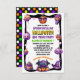 Este Cartão de Convite para Festa de Halloween para Crianças editável apresenta monstros bonitos, abóboras, e trata em roxo, laranja, rosa e verde-reluzente em um fundo branco. É perfeito para uma festa de aniversário Spooktacular para um menino ou menina, ou qualquer festa ou evento de Halloween de outras crianças.