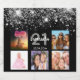 Uma etiqueta para uma festa de aniversário de 21 anos, celebrando sua vida com uma colagem de 5 fotos suas. Modelos para um nome, 21 anos e uma data. Data de nascimento ou data da festa. Letras brancas e ouros coloridas. Cor de fundo preto elegante, decorada com pó falso de cinza prateada.