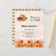 Um fundo rosa dourado, cor-de-rosa-claro. Decorado com flores laranja e um chapéu de vaqueira estilo "boho" com flores. Personalize e adicione um nome e detalhes da parte. 1 folha = 1 convite impresso de borda a borda.