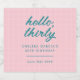 Jogue uma festa de aniversário pela piscina com essas etiquetas de azulejo rosa modernas. Apresenta um azulejo de pátio cor-de-rosa e uma tipografia colorido.