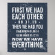 Nossa única impressão de enquadramento é fácil de personalizar com seu aniversário e nomes e datas de nascimento de seus filhos! A design de tipografia de vintage moderna mostra as palavras "Primeiro nós nos tivemos, depois tivemos você, agora temos tudo" com espaços para seu aniversário de casamento e dois aniversários infantis, em um fundo azul marinho. Tem três ou quatro filhos? Verifique se há uma versão alternativa no nosso compro.