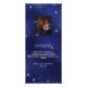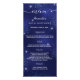 Cartão de menu de festa de aniversário. Personalize e adicione um nome, idade, data e menu. Um fundo azul marinho, decorado com poeira falsa brilhante. A cor azul está aberta. Letras brancas coloridas. Adicione uma foto da aniversariante, fatos e nomes divertidos.