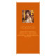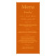 Cartão de menu de festa de aniversário. Personalize e adicione um nome, idade, data e menu. Um fundo laranja queimado. Letras coloridas com ouro. Adicione uma foto da aniversariante, fatos e nomes divertidos.