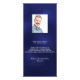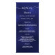 Cartão de menu de festa de aniversário. Personalize e adicione um nome, idade, data e menu. Um fundo azul marinho. A cor azul é irregular. Letras brancas coloridas. Voltar: adicione uma foto, fatos e nomes divertidos (família ou amigos)
