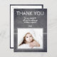Um obrigado de aniversário moderno que você faz para obrigado seus convidados. Simples obrigado para as crianças, menina e garoto, especialmente para 1rua e segundo aniversário. Personalize o cartão com sua foto e seu nome. Você também pode mudar o obrigado que você escreve e escreve seu próprio texto. O texto está na moda e na cor branca moderna. O fundo é o quadro-negro das cinzas.