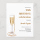 Um convite moderno, na moda e glamouroso para uma festa de aniversário de Pérolas e Prosecco (qualquer idade) Um fundo branco com vidro, flauta com bolhas de ouro e pérolas. O nome é escrito com um moderno estilo escrito à mão. Personalize e adicione os detalhes da sua festa. 1 folha = 1 convite impresso de borda a borda.