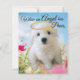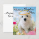 O design mostra um cachorro bichon em uma campina com um olhar angelical. O cachorrinho era meu menino quando ele era jovem.