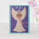 Design original para um cartão de Natal com um anjo estilizado na frente e um sentimento no interior.