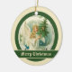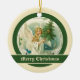 Anjo de safra com ornamentos de árvores de Natal. Fronteiras de veículos verdes.