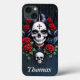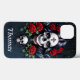 Anjo do Crânio de Açúcar com Rosas. Figura cativante que incorpora a simbiose perfeita da estética gótica e do talento romântico. O foco está em uma mulher com uma elaborada maquiagem do crânio de açúcar que brilha em cores vibrantes e mostra padrões delicados em seu rosto. Seus olhos grandes e expressivos cativam o espectador e transmitem força e vulnerabilidade. Um delicado padrão de pérolas penduradas dá à cena uma dimensão adicional e faz ela parecer quase um sonho. Um design onde a beleza e a escuridão se fundem harmoniosamente.