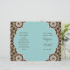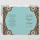 Um programa de casamento encantador e romântico para a noiva que se inclina para o contemporâneo com um pequeno toque de tradição. A cor damasco branca tem um toque moderno e o design do centro de quatrefoil está fora do centro e é divertido! Azul-aqua, castanho-chocolate e branco é uma combinação de cores muito bonita. Este convite pode ser criado em qualquer combinação de cores que você quiser. Tudo que precisamos é de uma ou mais amostras coloridas e estamos felizes em configurá-las para você, apenas envie um e-mail para nós. RECOMENDAÇÃO DO PAPEL: A menos que você tenha essas pontuações profissionais e dobradas em um compro de impressão, eu recomendo a seleção de papel que é o acabamento matinal. O papel básico é alto brilho no exterior e pode ser quebrado com cores escuras no ponto de dobrar.