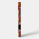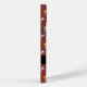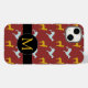 Capas de iphone personalizável com padrão de cães azuis e amarelos sobre fundo vermelho escuro + marca redonda preta para Monograma. Você pode facilmente alterar o monograma (fonte, cor, tamanho e posição) clicando no botão personalizar. Perfeito para o Ano Novo Chinês do Cachorro ou aniversário (nascer pessoas no Cachorro).