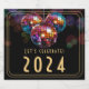 O vamos comemora o rótulo do vinho espumante de 2024. Fácil de mudar para o ano atual. Bolas de Disco Espumantes e anéis coloridos de lascas leves decoram o rótulo e são perfeitos para o tema e produto da festa. Celebrar o ano passado e cumprimentar o ano novo.