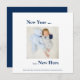 Seu novo filho chegou bem na hora de ver no ano novo! Ficará animado em anunciar as maravilhosas notícias para seus entes queridos. Você pode desejar a eles uma Feliz ano novo ao mesmo tempo com este design de Ano Novo moderno, Novo Aqui, que é totalmente personalizável junto com sua foto favorita de seu novo filho. Sua foto favorita está em um formato quadrado no centro, com muito espaço branco ao redor para uma sensação contemporânea. Personalize facilmente o texto na frente e atrás com o seu próprio texto, incluindo todos os detalhes de sua nova chegada no verso, e simplesmente substitua a foto da amostra no espaço reservado da modelo por sua própria. Você também pode alterar as cores de fundo e texto em ambos os lados se desejar, por meio da personalização.