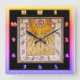 Antiguamente relógio de sol pré-histórico com o rosto dentro ao sol e com números antigos pretos. Com números de ouro para o relógio.