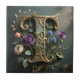 This design is special for its opulent dimensional gold scrollwork, which frames the letter 'T's cracked, antique teal patina finish. It is lavishly wrapped in a garland of deep purple rose, pale peony, and blue thistle, intertwined with mossy branches. The overall composition achieves a luxurious, personalized, and vintage heirloom aesthetic.