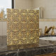 This richly detailed ceramic tile features an ornate antique-gold petal motif arranged in a refined geometric grid. Each four-petal emblem is embossed with small teardrop accents, giving the design an elegant, dimensional look reminiscent of vintage metalwork. The warm golden tones and softly aged texture create a luxurious, timeless feel—perfect for collectors who love classic patterns with a metallic twist. A striking stand-alone tile or a beautiful addition to any curated mix-and-match display. Search ID1227 to see other metallic geometric designs in this series. Note: design adapted from generative content.