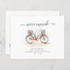 Chic boho movendo o cartão orçamentário com a cor d'água da bicicleta vermelha feminina com moderno letreiro e tipografia negra que você pode personalizar. Adicione seus detalhes clicando no botão "Personalizar". O endereço na frente também aparece no verso e você pode adicionar facilmente sua mensagem personalizada para dar um toque pessoal