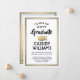 Compartilhe a alegria de uma formatura do ensino médio ou faculdade com esses anúncios personalizados em preto, branco e dourado. (DICA DE POSICIONAMENTO DE IMAGEM: Uma maneira fácil de centralizar uma imagem exatamente como você deseja é cortá-la antes de fazer o upload para o site da Zazzle.) Este modelo inclui o nome do formando, ano de formatura e escola, bem como qualquer texto de sua escolha, como detalhes do convite para a festa, honrarias especiais, título do diploma, citação inspiradora favorita, informações de contato do formando, planos de educação futura ou novo cargo. Todo o texto é fácil de personalizar. O design apresenta uma borda moderna com efeito de folha de ouro, boné de formatura, caligrafia elegante, tipografia tradicional e uma foto de sua escolha, como uma foto de formatura ou imagem da cerimônia de formatura. Por favor, note que o dourado é uma cor impressa, não folha metálica. Esses cartões de anúncio de formatura são uma maneira moderna e elegante de compartilhar a celebração do