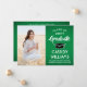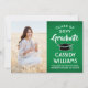 Compartilhe a alegria de um segundo grau ou formandos com estes anúncios personalizados em verde, branco e preto. (DICA DE IMAGEM: Uma maneira fácil de centralizar uma imagem exatamente como você deseja é recortá-la antes de carregá-la no site do Zazzle.) Este modelo é simples de personalizar com qualquer texto de sua escolha, como detalhes do convite de festas, nomes de pais, honras especiais, título de grau, citação inspiracional favorita, informações de contato do formando, planos educacionais futuros ou nova posição de emprego. Se houver algum texto não desejado, simplesmente exclua-o. Design apresenta um fundo verde, boné de conselho de argamassa preta, caligrafia de script de estilo manuscrito, tipografia moderna elegante e uma foto de sua escolha, como uma fotografia de mais velho ou imagem da cerimônia de início. Estes cartões de anúncio elegantes de formatura são uma forma na moda para compartilhar sua celebração especial com a família e os amigos. Parabéns ao formando!