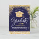 Placa de Anúncio de Graduação com Glitter Dourado Elegante para Caligrafia 2023. Celebre sua festa de formatura com esta elegante e festiva carta de convite de luxo brilhante, brilhante, de ouro, com belas caligrafias manuscritas. Todos os textos estão pré-organizados para que você personalize fácil e rapidamente com seus próprios detalhes.