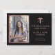 O moderno e elegante modelo de cartão de anúncio da formatura de uma escola de enfermagem negra e rosegold com sua foto e texto personalizados.