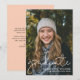 Cartão de Anúncio de Graduado 2024 com Sobreposição de Rótulo Moderno e espaço para detalhes/informações adicionais no verso. O verso é bege claro com texto preto.