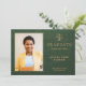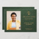 O visual moderno e elegante de couro verde escuro e o modelo da graduação da faculdade em ouro de cobre com sua foto e texto personalizados. +++++++++ Fácil de personalizar em ambos os lados!