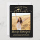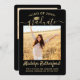 Compartilhe a alegria de um segundo grau ou formandos com estes anúncios personalizados de 2 fotos em preto e ouro. (DICA DE IMAGEM: Uma maneira fácil de centralizar uma imagem exatamente como você deseja é recortá-la antes de carregá-la no site do Zazzle.) Este modelo inclui o nome do formando, o ano de aula e a escola, e é simples de personalizar com qualquer texto de sua escolha, como detalhes do convite de festas, nomes de pais, honras especiais, título do grau, citação de inspiração favorita, informações de contato do formando, planos educacionais futuros ou nova posição de emprego. Se houver algum texto não desejado, simplesmente exclua-o. Design apresenta um boné de conselho de folha falsa, caligrafia de escrita manual, tipografia moderna minimalista e duas fotos da sua escolha, como fotos de mais velho ou imagens da cerimônia de início. Observe que o ouro é impresso a cor, não a folha metálica. Estas elegantes cartas de graduação são uma maneira moderna e chique de compartilhar sua celebração especial com a família e os amigos. Parabéns ao formando!