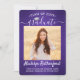 Compartilhe a alegria de um segundo grau ou formandos com estes anúncios personalizados de 2 fotos, roxo, branco e prata. (DICA DE IMAGEM: Uma maneira fácil de centralizar uma imagem exatamente como você deseja é recortá-la antes de carregá-la no site do Zazzle.) Este modelo inclui o nome do formando, o ano de aula e a escola, e é simples de personalizar com qualquer texto de sua escolha, como detalhes do convite de festas, nomes de pais, honras especiais, título do grau, citação de inspiração favorita, informações de contato do formando, planos educacionais futuros ou nova posição de emprego. Se houver algum texto não desejado, simplesmente exclua-o. Design apresenta um fundo roxo escovado, boné falso de morteiro de folha de alumínio, caligrafia de script de estilo manuscrito, tipografia moderna minimalista e duas fotos de sua escolha, como fotos de mais velho ou imagens da cerimônia inicial. Note que o fundo é impresso a cores e não em folhas metálicas. Estes cartões de anúncio elegantes de formatura são uma forma na moda para compartilhar sua celebração especial com a família e os amigos. Parabéns ao formando!