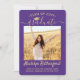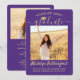 Compartilhe a alegria de um segundo grau ou formandos com estes anúncios personalizados de 2 fotos roxas e ouro. (DICA DE IMAGEM: Uma maneira fácil de centralizar uma imagem exatamente como você deseja é recortá-la antes de carregá-la no site do Zazzle.) Este modelo inclui o nome do formando, o ano de aula e a escola, e é simples de personalizar com qualquer texto de sua escolha, como detalhes do convite de festas, nomes de pais, honras especiais, título do grau, citação de inspiração favorita, informações de contato do formando, planos educacionais futuros ou nova posição de emprego. Se houver algum texto não desejado, simplesmente exclua-o. Design apresenta um fundo ombre roxo, boné de conselho de morteiro de folha falsa, caligrafia com script, tipografia moderna minimalista e duas fotos de sua escolha, como fotos de mais velho ou imagens da cerimônia de início. Observe que o ouro é impresso a cor, não a folha metálica. Estas elegantes cartas de graduação são uma maneira moderna e chique de compartilhar sua celebração especial com a família e os amigos. Parabéns ao formando!