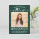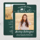 Compartilhe a alegria de um segundo grau ou formandos com estes anúncios personalizados de 2 fotos verde-escuro, branco e prata. (DICA DE IMAGEM: Uma maneira fácil de centralizar uma imagem exatamente como você deseja é recortá-la antes de carregá-la no site do Zazzle.) Este modelo inclui o nome do formando, o ano de aula e a escola, e é simples de personalizar com qualquer texto de sua escolha, como detalhes do convite de festas, nomes de pais, honras especiais, título do grau, citação de inspiração favorita, informações de contato do formando, planos educacionais futuros ou nova posição de emprego. Se houver algum texto não desejado, simplesmente exclua-o. Design apresenta um fundo verde, boné de conselho de argamassa de aço inoxidável esfregado, caligrafia de script de estilo manuscrito, tipografia moderna minimalista e duas fotos de sua escolha, como fotos de mais velho ou imagens da cerimônia inicial. Por favor, note que prata é cor impressa, não é folha metálica. Estas elegantes cartas de graduação são uma maneira moderna e chique de compartilhar sua celebração especial com a família e os amigos. Parabéns ao formando!