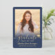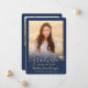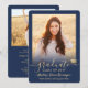 Compartilhe a alegria de um segundo grau ou formandos com estes anúncios de azul e ouro personalizados de marinho de 2 fotos. Todas as imagens e textos são simples de personalizar. (DICA DE IMAGEM: Uma maneira fácil de centralizar uma foto exatamente como você deseja é recortá-la antes de carregá-la no site do Zazzle.) Este modelo é simples de personalizar com quaisquer detalhes de sua escolha, como informações sobre convites de festas, nomes de pais, honras especiais, título de grau, citação inspiracional favorita, informações de contato do formando, planos educacionais futuros ou nova posição de emprego. Se houver algum texto não desejado, simplesmente exclua-o. Design apresenta um falso boné de conselho de folha de ouro, caligrafia de escrita manual, tipografia moderna minimalista e duas fotos da sua escolha, como fotos de mais velho ou imagens da cerimônia de início. Estas elegantes cartas de graduação são uma maneira moderna e chique de compartilhar sua celebração especial com a família e os amigos. Parabéns ao formando!