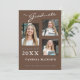 Cartões modernos de anúncio de graduação de fotos. Este desenho personalizado combina um guião de estilo caligrafia, escrito à mão, com o texto moderno da moda, em branco, e cinzas, sobre um fundo de terracota de tom de na moda. A parte traseira do design oferece campos de texto personalizáveis para seu lançamento, informações sobre formandos e planos futuros sobre um fundo de cor de terraço leve. Para ver mais itens como este, visite minha loja aqui em "www.Zazzle.com/LakeViewCardCo". Obrigados