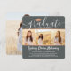 Compartilhe a alegria de um segundo grau ou formandos com cinzas personalizadas de 4 colagens de fotos, anúncios quadrados de cobre brancos e falsos. Todas as imagens e textos são simples de personalizar. (DICA DE IMAGEM: Uma maneira fácil de centralizar uma foto exatamente como você deseja é recortá-la antes de carregá-la no site do Zazzle.) Este modelo pode ser personalizado com quaisquer detalhes de sua escolha, como informações sobre convites de festas, nomes de pais, honras especiais, título de grau, citação inspiracional favorita, informações de contato do formando, planos educacionais futuros ou nova posição de emprego. Design apresenta um fundo sombrio de cinza, boné de conselho de morteiro de folha falsa, caligrafia de script escrita à mão, tipografia moderna minimalista e quatro fotos de sua escolha, como fotos de mais velho ou imagens da cerimônia de início. Observe que cobre é impresso a cores, não metal. Estas elegantes cartas de graduação são uma maneira moderna e chique de compartilhar sua celebração especial com a família e os amigos. Parabéns ao formando!