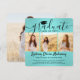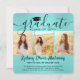 Compartilhe a alegria de uma formatura do ensino médio ou faculdade com esses anúncios personalizados quadrados de colagem de 4 fotos nas cores azul turquesa e preto. Todas as imagens e textos são fáceis de personalizar. (DICA DE COLOCAÇÃO DE IMAGEM: Uma maneira fácil de centralizar uma foto exatamente como você deseja é cortá-la antes de fazer o upload para o site da Zazzle.) Este modelo pode ser personalizado com qualquer detalhe de sua escolha, como informações de convite para festa, nomes dos pais, honrarias especiais, título do diploma, citação inspiradora favorita, informações de contato do graduado, planos de educação futura ou novo cargo. O design apresenta um fundo de folha falsa azul turquesa / azul esverdeado, boné preto, caligrafia de estilo manuscrito, tipografia minimalista moderna e quatro fotos de sua escolha, como fotos de formatura ou imagens da cerimônia de formatura. Por favor, note que o azul esverdeado rosa é a cor impressa, não folha metálica. Esses cartões de anúncio de formatura são uma maneira moderna e elegante de compartilhar a celebração do seu dia