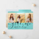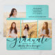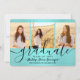 Compartilhe a alegria de uma formatura do ensino médio ou faculdade com esses convites personalizados de colagem de 4 fotos em azul turquesa e preto. Todas as imagens e textos são fáceis de personalizar. (DICA DE COLOCAÇÃO DE IMAGEM: Uma maneira fácil de centralizar uma foto exatamente como você quer é cortá-la antes de fazer o upload para o site da Zazzle.) Este modelo é simples de personalizar com quaisquer detalhes de sua escolha, como informações de convite para festa, nomes dos pais, honrarias especiais, título do diploma, citação inspiradora favorita, informações de contato do graduado, planos de educação futura ou novo cargo. Se houver algum texto que não seja desejado, basta excluí-lo. O design apresenta um fundo azul turquesa escovado, um boné de formatura preto, caligrafia de estilo manuscrito, tipografia minimalista moderna e quatro fotos de sua escolha, como fotos de formatura ou imagens da cerimônia de formatura. Por favor, note que o fundo é impresso em cor, não em folha metálica. Esses cartões de convite de formatura elegantes são uma maneira moderna e sofisticada de compartilhar a celebra