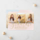 Compartilhe a alegria de um segundo grau ou formandos com anúncios personalizados de 4 fotos, cor-de-rosa-claro e ouro, descarregáveis. As imagens e todos os textos deste modelo digital são simples de personalizar com quaisquer detalhes de sua escolha, como informações sobre convites de festas, nomes de pais, honras especiais, título de grau, citação inspiracional favorita, informações de contato do formando ou planos para o futuro. (DICA DE IMAGEM: Uma maneira fácil de centralizar uma foto exatamente como você deseja é recortá-la antes de carregá-la no site do Zazzle.) O design de cor e ouro apresenta um fundo cor-de-rosa, boné de conselho de argamassa, tipografia moderna, caligrafia com script de tendências e quatro fotos de sua escolha, como fotos de mais velho ou imagens da cerimônia de início. Observe que o ouro é impresso a cor, não a folha metálica. Estes cartões de anúncio de na moda são uma maneira elegante de compartilhar uma celebração especial de dia com a família e os amigos. Parabéns ao formando!