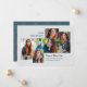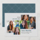 Estes anúncios de graduação de 7" x 5" apresentam um arranjo de fotos divertidas para cinco (5) de suas fotos favoritas em teal e cinzas e espaços reservados para seu nome, ano de graduação, escola e grau.