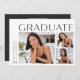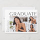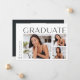 An elegant and modern graduation announcement card featuring three photos (one square and two horizontal), with "graduate" in across the top. Personalize with your graduation year, name, and school along the left side. Add a personal message to the back, along with an additional photo.