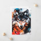 Uma pintura em forma de lobo abstrato, que se assombra, misturando cores ousadas e pinceladas dinâmicas que trazem o espírito selvagem e a energia indomável do caçador silencioso da natureza.