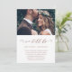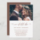 Elegante muda a data do anúncio de adiamento do casamento. Este simples anúncio é uma maneira engraçada de deixar os convidados saberem que sua data de casamento foi remarcada devido a circunstâncias imprevistas, e inclui a nova data de casamento. Este anúncio de tendência apresenta um belo roteiro falso de caligrafia em cobre em um fundo branco com a foto do casal, e uma cor marrom de cobre na parte de trás do cartão.